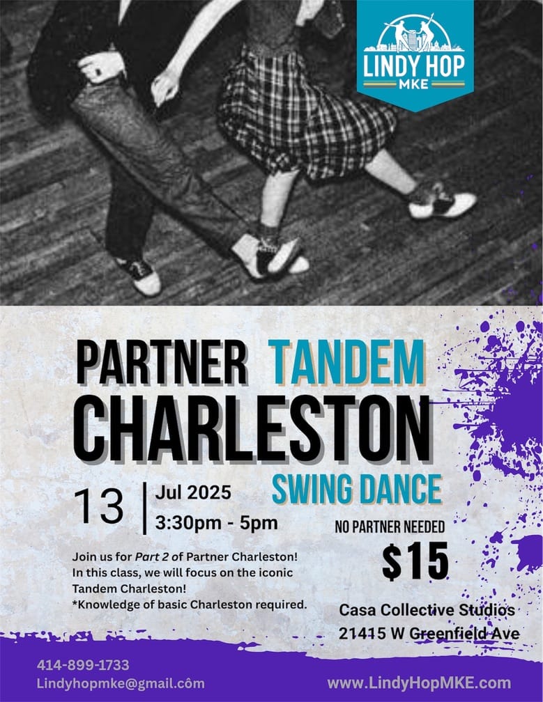 Join us for Part 2 of our Charleston classes! For this class, we will focus on the iconic Tandem Charleston! This move is a must in the Lindy Hoppers repertoire! Knowledge of the basic Charleston is required.
